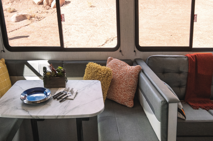 Not all RVs have space for large, panoramic windows – especially smaller models that make the most of every square inch of floor space. But tons of Heartland models use oversized windows to let in lots of natural light, especially in the living room and RV kitchen areas. In other words, areas where your pets can find a comfy seat in front of a window and chatter or chuff at the birds for hours.