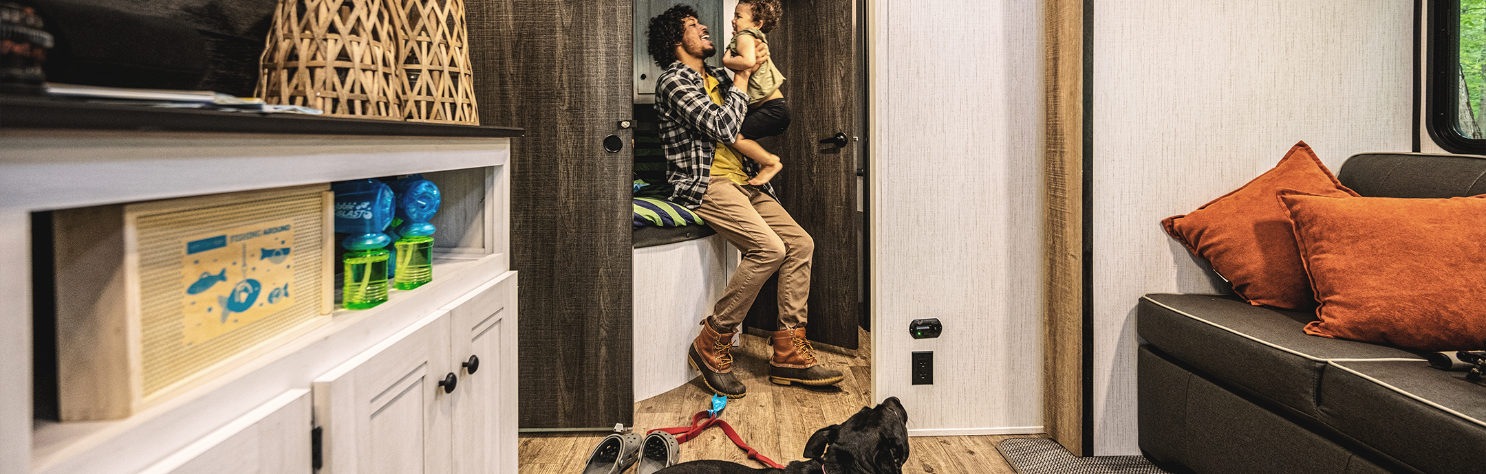 Some of our most useful features for pet owners extend across Heartland brands and models. For example, standard easy-to-clean, marine-grade, carpet-free flooring means it’s easy to clean up pet shedding, accidents, and mud tracked in on puppy paws. The floors are water-resistant, durable, and hypoallergenic, too. Your pets may not appreciate them, but we think you will.