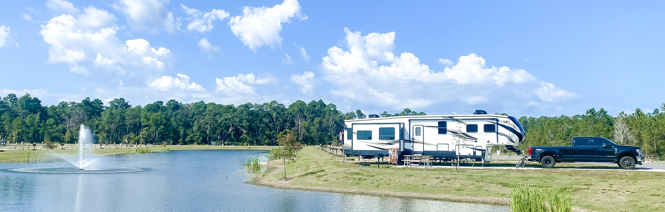 There are so many different types of RVs to choose from, ranging from small camper vans to large motorhomes with all the bells and whistles. Consider the size of your family, the types of RV parks, state parks, or resorts you’d like to stay in, and your budget when choosing your RV. Some RV parks do have size restrictions, however, we personally haven’t encountered a park that couldn’t accommodate our Heartland Bighorn Traveler 39MB fifth wheel.