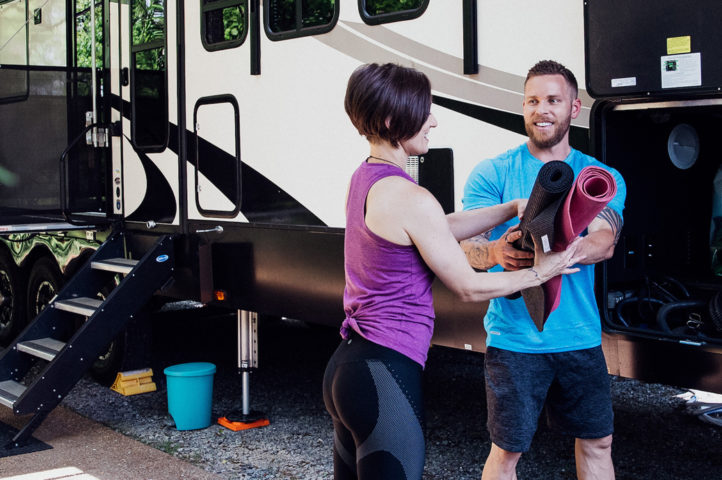 And in case of inclement weather, working out inside your RV is totally possible (there might just be some height restrictions if you’re using a travel trailer), but you could do bands or bodyweight workouts and adapt them to your small space.