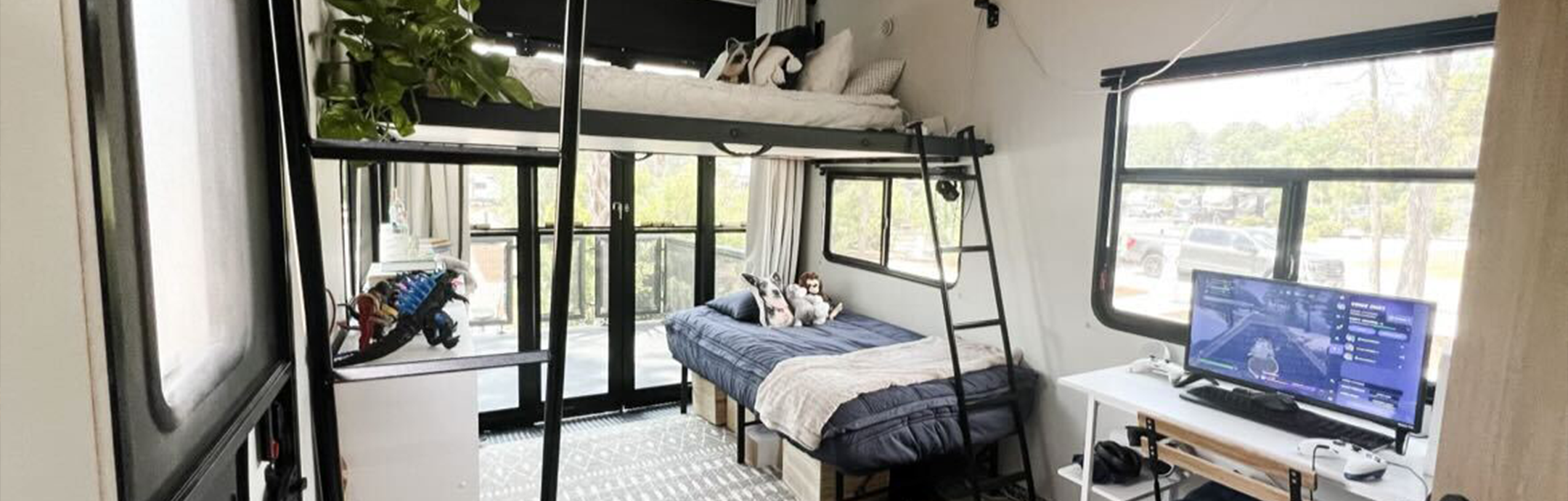 When our family made the decision to transition to full-time RV living, we knew we needed a space that would suit our unique needs. After searching for the perfect RV, we found the Heartland Torque 424 toy hauler, and immediately saw its potential to become the perfect home for our family of five. As we set out to make it our own, we realized the opportunity to truly personalize our RV—inside and out—was endless. Here’s how we went about personalizing our RV to make it a comfortable, functional, and stylish space for our family.