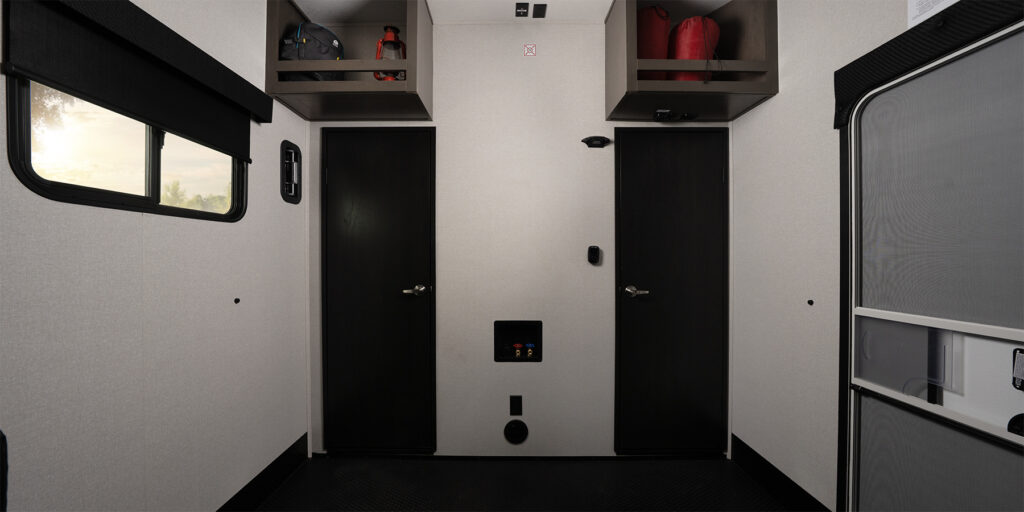 Pass-through storage with Slam-latch™ baggage doors