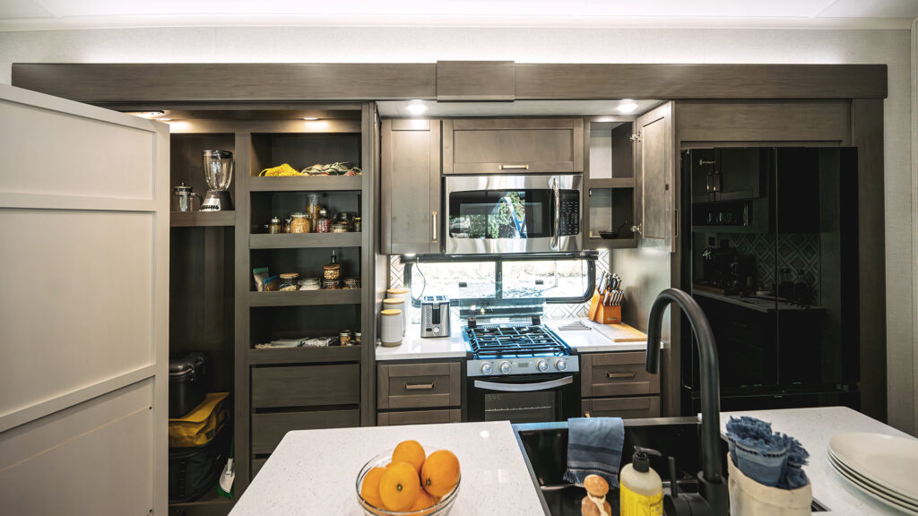 Pass-through storage with Slam-latch™ baggage doors