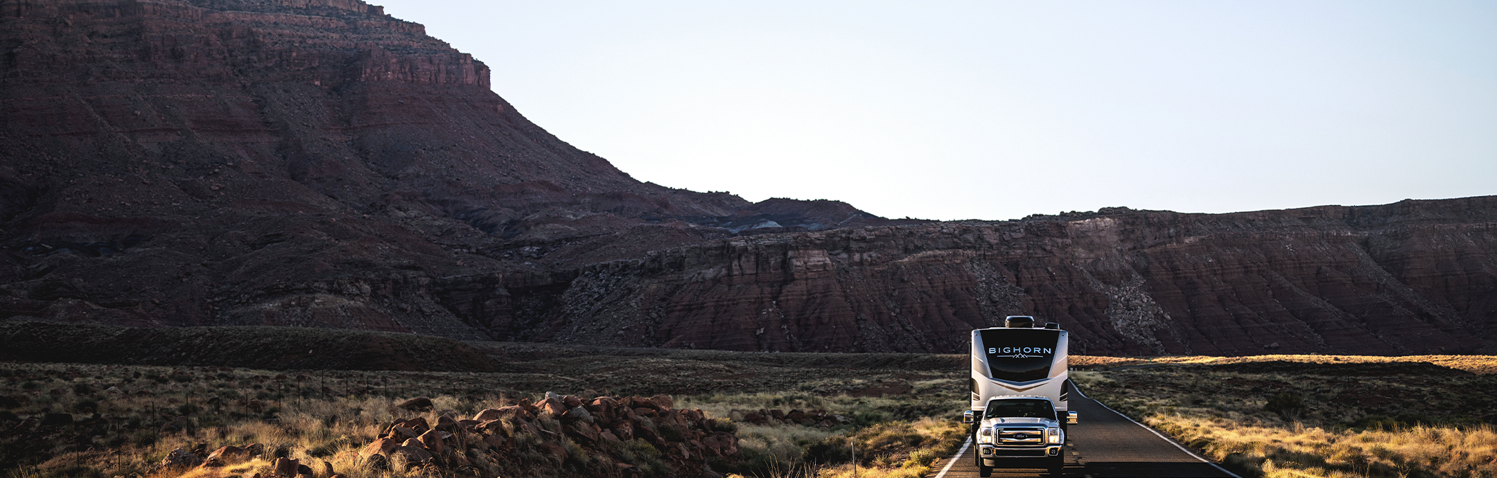 Camping with friends or family? The 80-inch flip-and-fold sleeper sofa in the living room is perfect for guests, and a 40-inch electric fireplace puts out 5,000 BTU of heat for cozy evenings in. Power theater seating sits opposite a generously sized TV, next to the kitchen table with a fold-down leaf that provides extra space when you need it. And like the Bighorn 3300DL, the Bighorn Traveler 32RS also comes with generous basement storage, a heated and enclosed underbelly and a high-capability furnace so you can plan longer trips in a wider variety of climates and seasons.